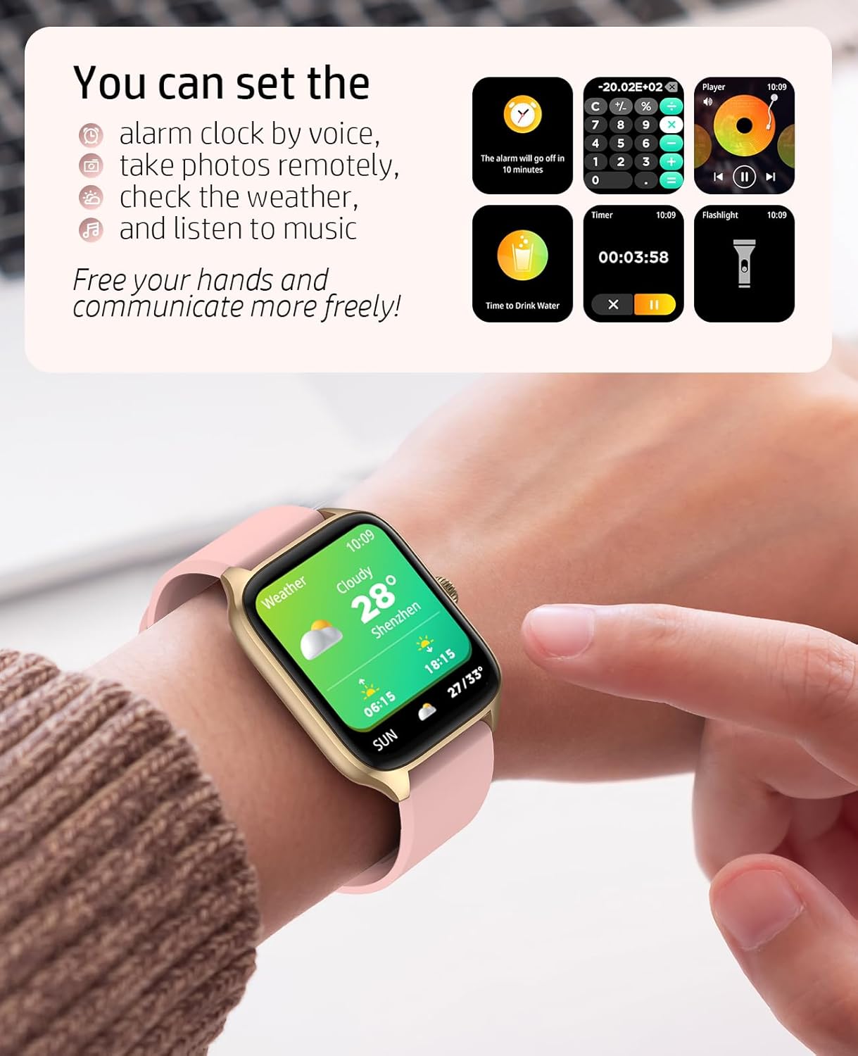 - VERSATILE ASSISTANT AT YOUR COMMAND —— Command your world with an intelligent voice assistant. From checking the weather and finding your phone to listening to music and capturing moments, your smartwatch is more than a gadget; it’s a versatile assistant tailored to your daily needs.
